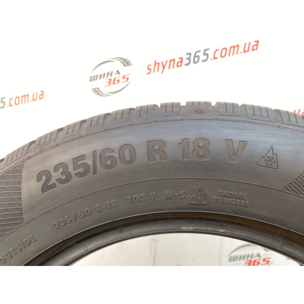 Купить зимнюю б/у автошину CONTINENTAL WINTERCONTACT TS850P SUV в размере 235/60 R18 на сайте «Шина 365» по лучшей цене. У которой превосходные характеристики на снегу благодаря рисунку протектора S-GRIP, а за счёт PrecicionPlus и PowerSipes- ламелям хорошая управляемость на любом дорожном покрытии. Минимальный тормозной путь с помощью рисунка протектора ActiveBand. Еще один плюс шины- это низкое сопротивление качению, а усиленная боковина позволит выдержать большие нагрузки. Водитель всегда себя будет чувствовать комфортно и не менее важно- безопасно, так как плечевая зона покрышки уникальна за счет которой увеличивается безопасность.