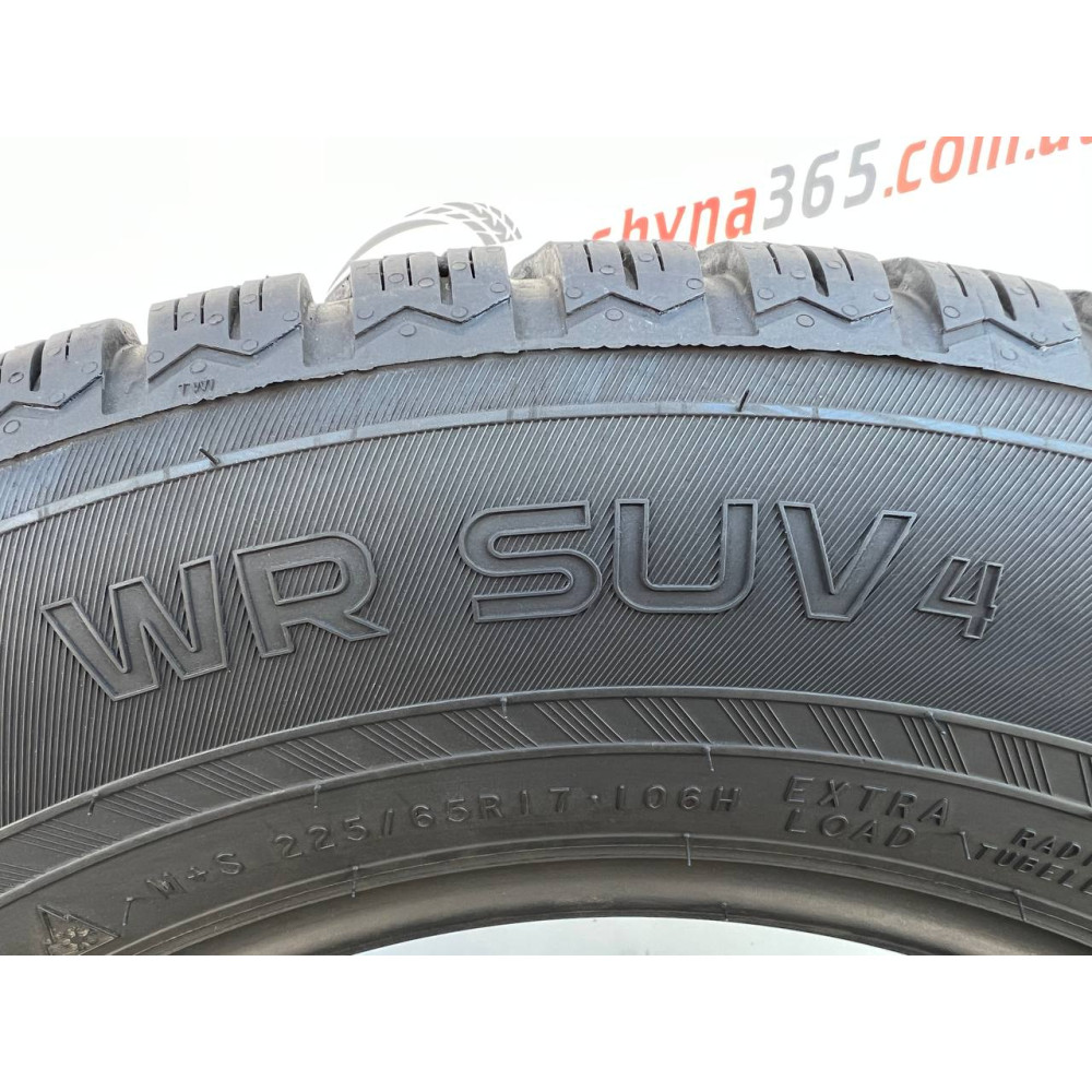 Зимові шини розміром 225/65 R17 NOKIAN WR SUV4 із протектором 7мм відрізняються за ціною від нових. При цьому у нашому магазині Shyna 365 усі шини проходять комплексну перевірку. Тому наші шини не поступаються якістю новим, але помітно економлять ваші фінанси. Шини мають безпечне зчеплення при вологому або сніжному покритті, унікальний малюнок протектора, швидко та ефективно видаляють сніг, воду та сльоту, ефективно захищає від аквапланування. Шини залишаються гнучкими навіть за дуже низьких температур. Ця модель легка в управлінні і чудово справляється з ожеледицею. При покупці цієї моделі Ви можете бути впевнені у високому рівні комфорту та надійності на тривалий термін.