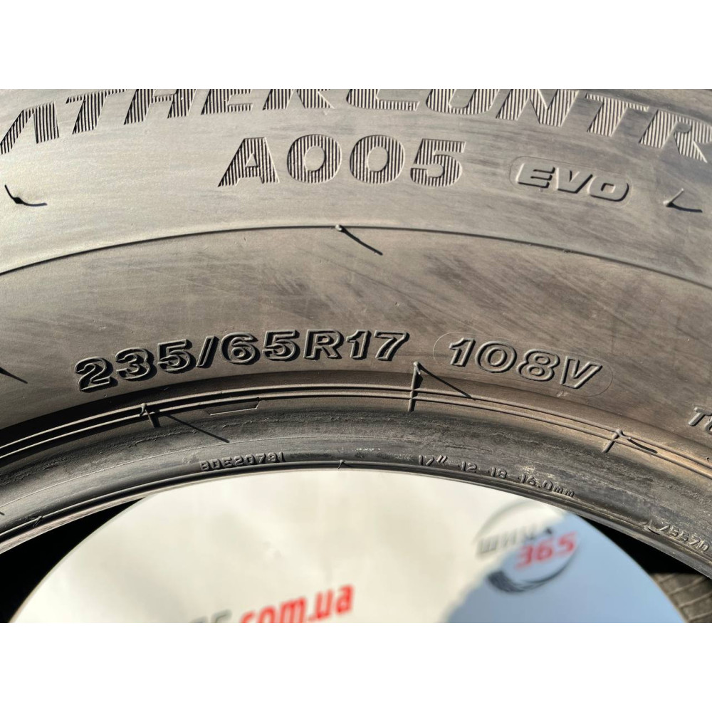 Всесезонные шины в размере 235/65 R17 BRIDGESTONE WEATHERCONTROL A005 EVO отличаются по цене от новых. При этом в нашем магазине Shyna 365 все шины проходят комплексную проверку. Поэтому наши шины не уступают по качеству новым, но заметно экономят ваши финансы. Шины имеют безопасное сцепление при влажном или снеговом покрытии, уникальный рисунок протектора, быстро и эффективно удаляют снег, воду и взлет, эффективно защищает от аквапланирования. Шины остаются гибкими даже при очень низких температурах, а также надежно обнаруживаются в летний период. Эта модель легка в управлении и отлично справляется на льду . При покупке этой модели Вы можете быть уверены в высоком уровне комфорта и надежности в любую погоду на длительный срок.